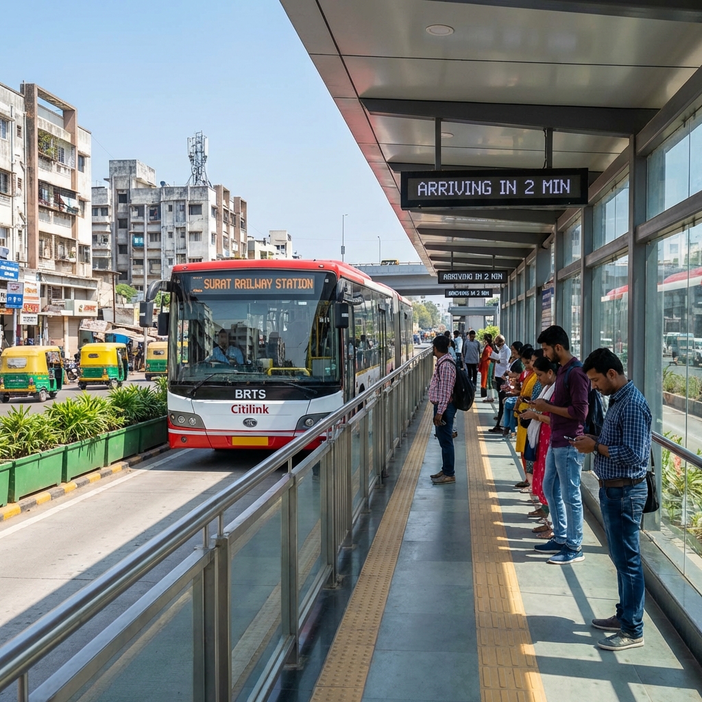 App-based AC buses with fixed routes, guaranteed seating, and on-time travel.